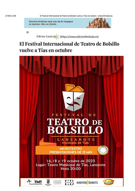 PRENSA V EDICIÓN DEL FESTIVAL INTERNACIONAL DE TEATRO DE BOLSILLO 2025 LANZAROTE
